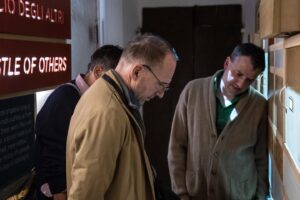 Visita a sorpresa oggi al Piccolo museo del diario. Lui è Ralph Fiennes, condotto alla scoperta delle storie del museo da Giacomo, una delle guide che accoglie in inglese i numerosi visitatori stranieri che fanno tappa a Palazzo Pretorio.